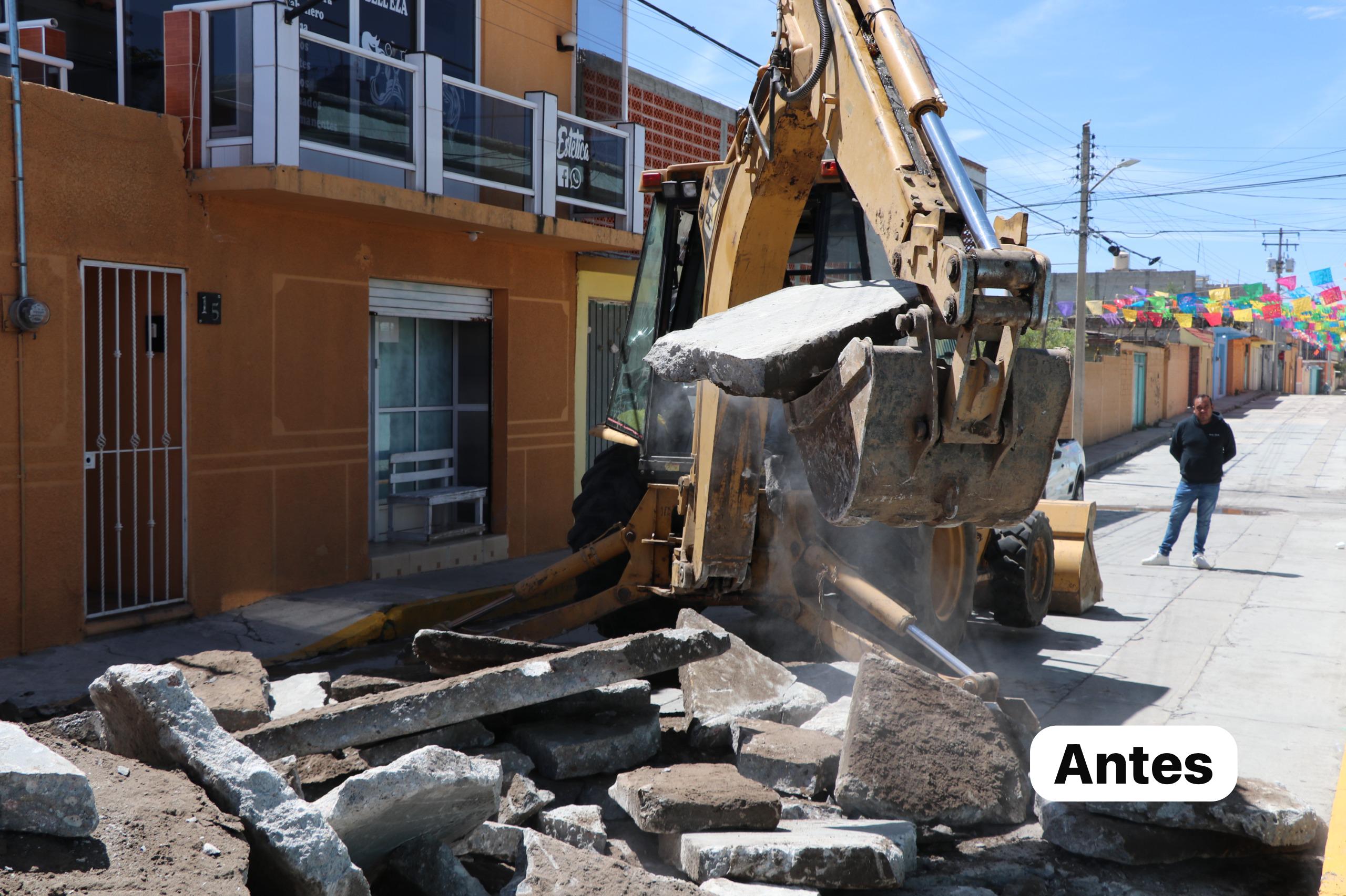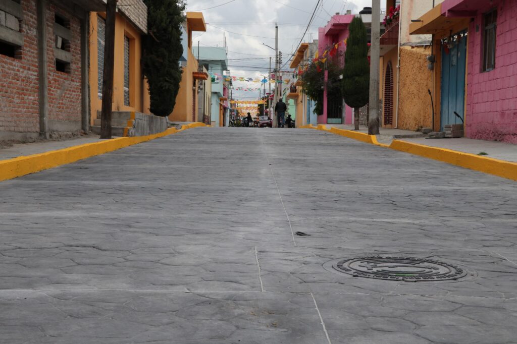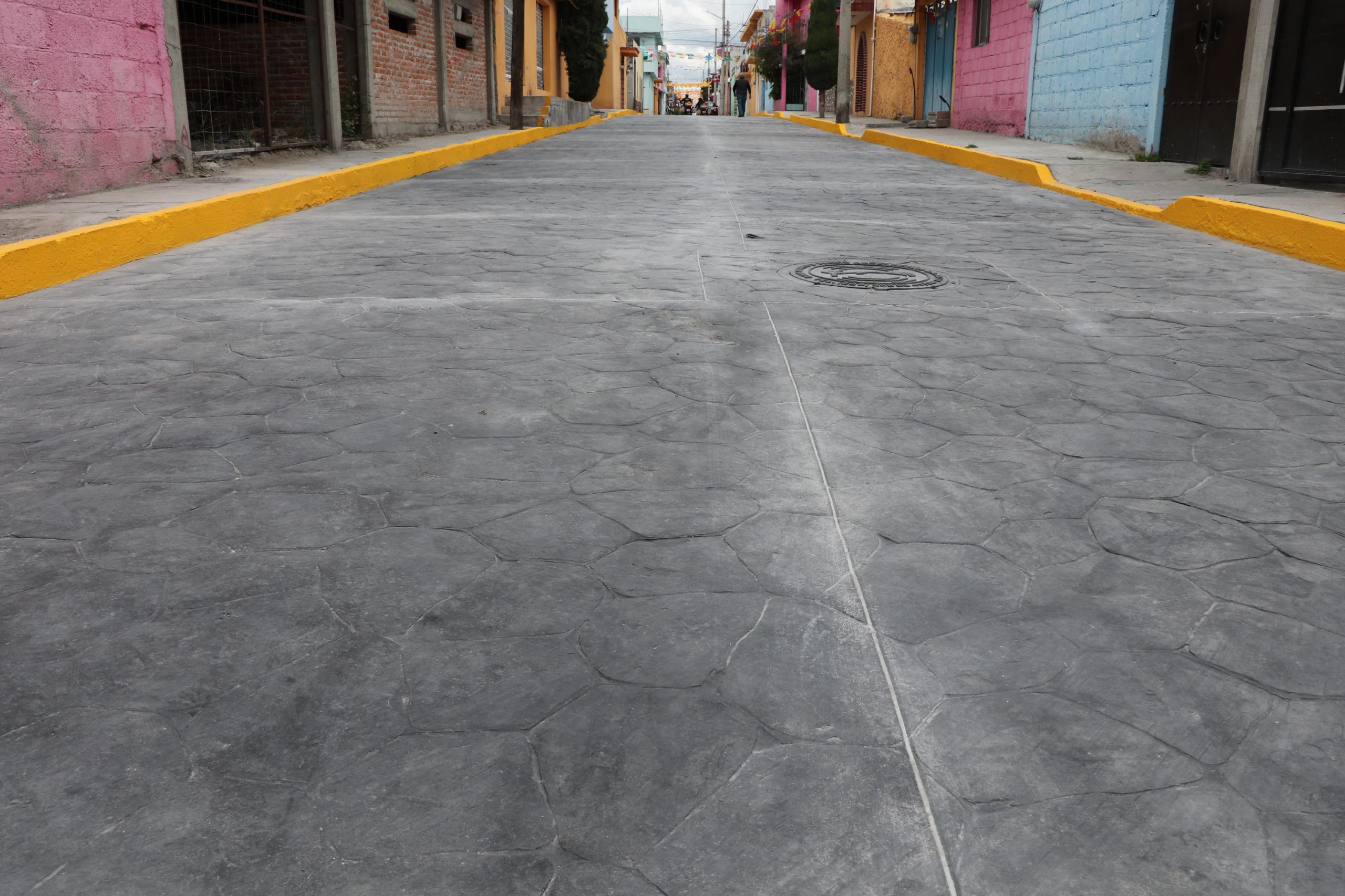 La rehabilitación del pavimento con concreto hidráulico, en 696 metros cuadrados, con una inversión de $1,105,568.47 pesos.